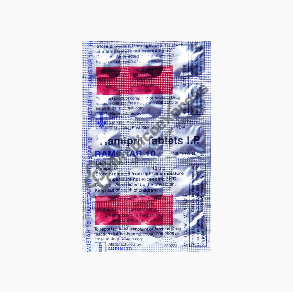 Ramistar 10mg tablets 15's a blood pressure lowering medicine known as a 'angiotensin converting enzyme (ace) inhibitor,' which is primarily used to treat high blood pressure (hypertension) and lessen the risk of suffering a heart attack, stroke, or heart failure.Disclaimer:For more information contact your physician
