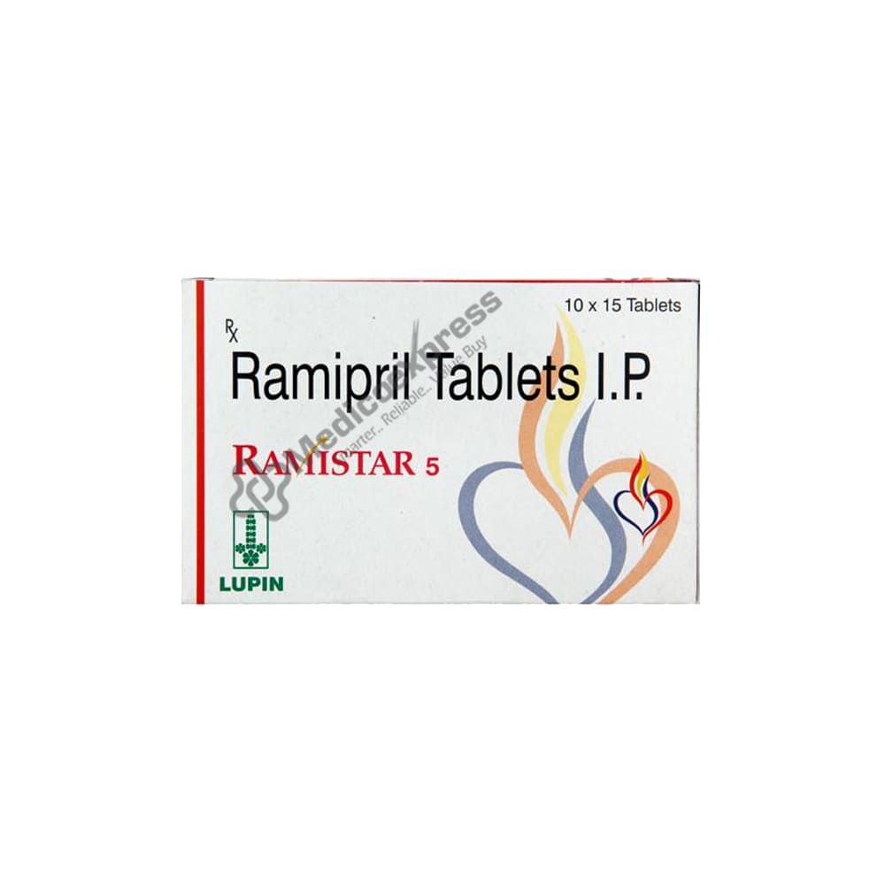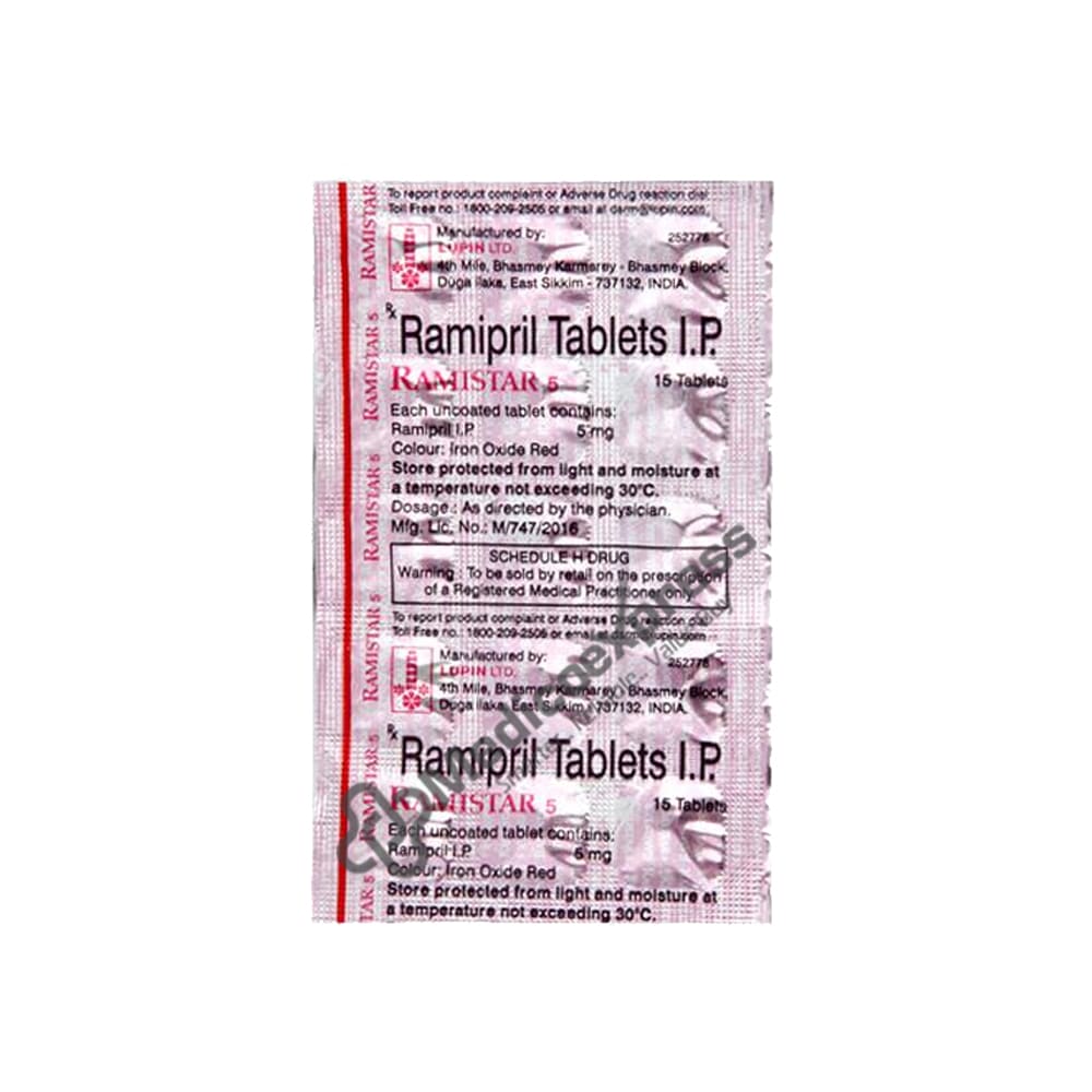 Ramistar 5mg strip of 15 tablets is a blood pressure lowering medicine known as a 'angiotensin converting enzyme (ace) inhibitor,' which is primarily used to treat high blood pressure (hypertension) and lessen the risk of suffering a heart attack, stroke, or heart failure.Disclaimer:For more information contact your physician