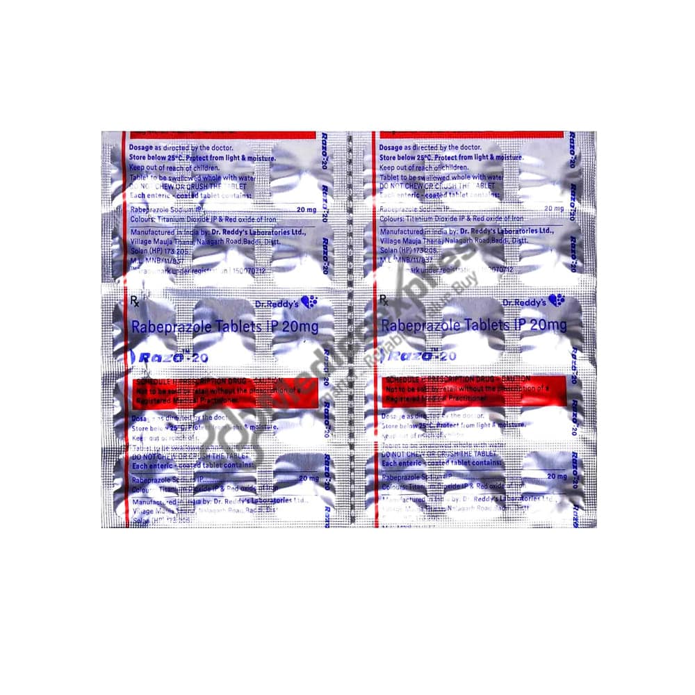 Razo-20 Tablet 15's belongs to a class of antiulcer medications known as proton pump inhibitors, which are used to treat duodenal ulcers, gastro-oesophageal reflux disease (reflux of gastric contents into the oesophagus), heartburn, erosive oesophagitis (acid-related damage to the lining of the oesophagus), infections caused by Helicobacter pylori when givenDisclaimer:For More Information Contact Your Physician