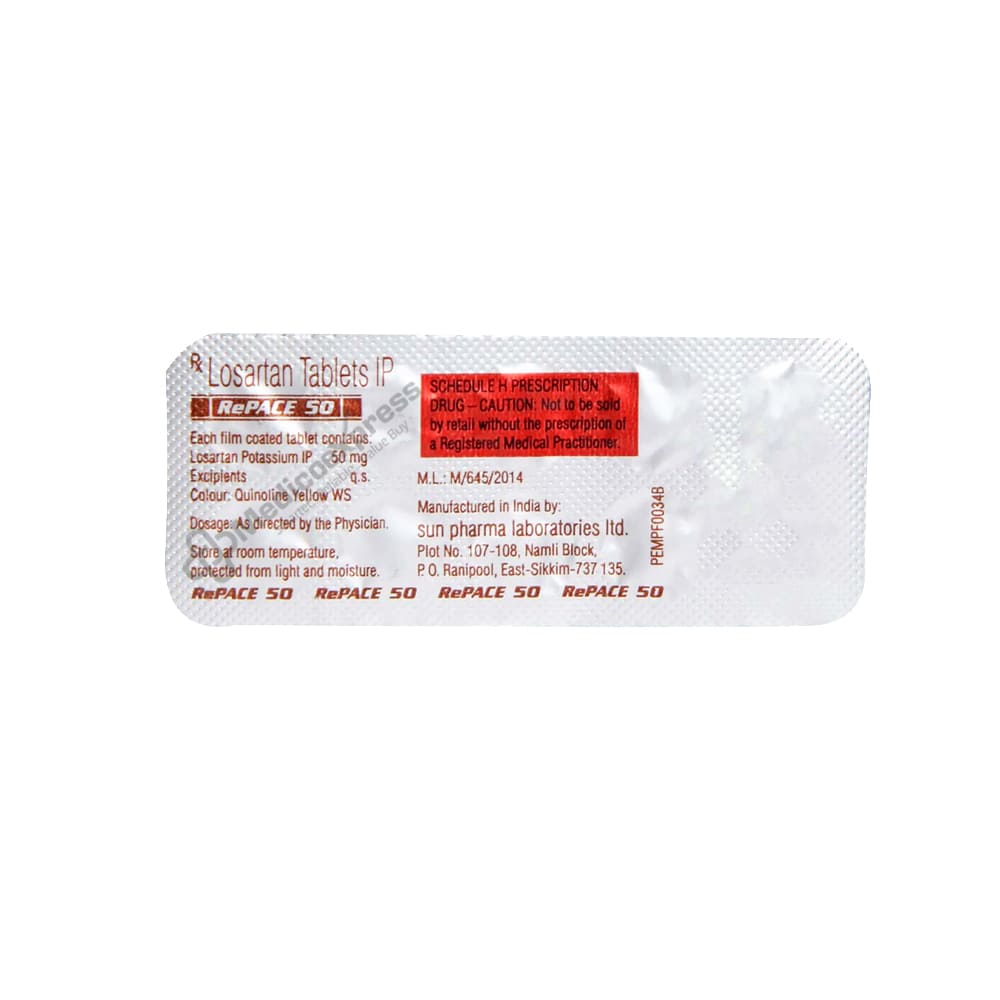 Repace 50 Tablet 10 belongs to the angiotensin II receptor blocker class of drugs, which are used to treat high blood pressure (hypertension) and lower the risk of stroke in certain people with heart disease.Disclaimer:For More Information Contact Your Physician