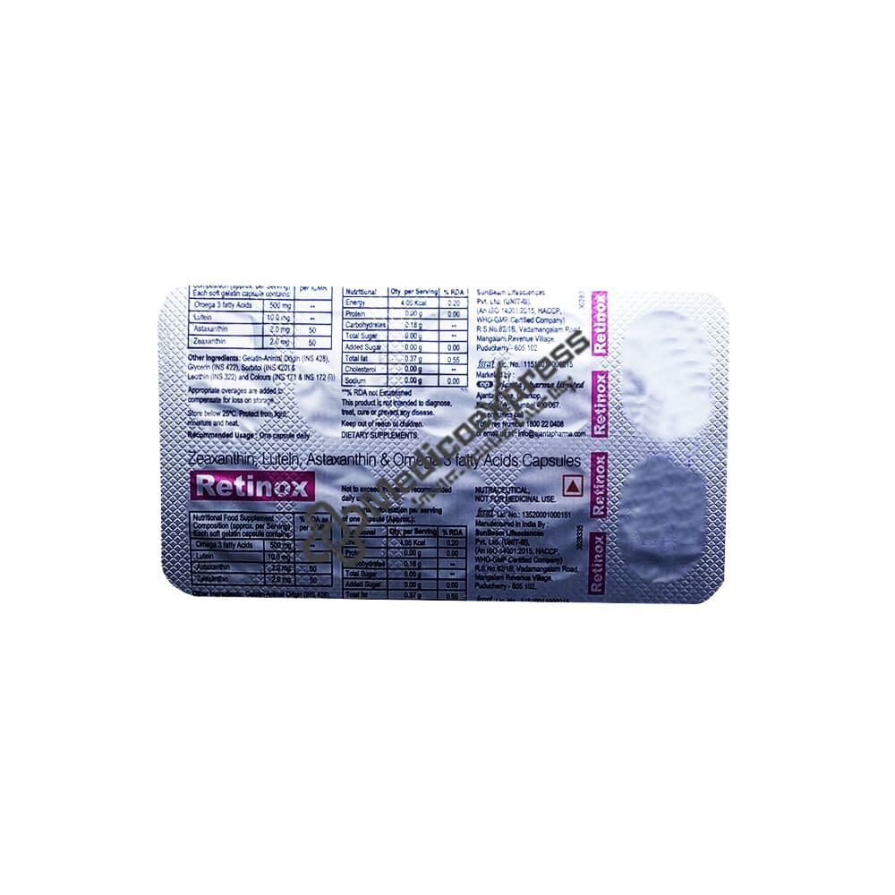 Retinox capsule 30’s helps maintain good eye health and proper retinal functioning. And for presbyopia, macular degeneration, dry eye, and cataracts.Disclaimer:For more information contact your physician