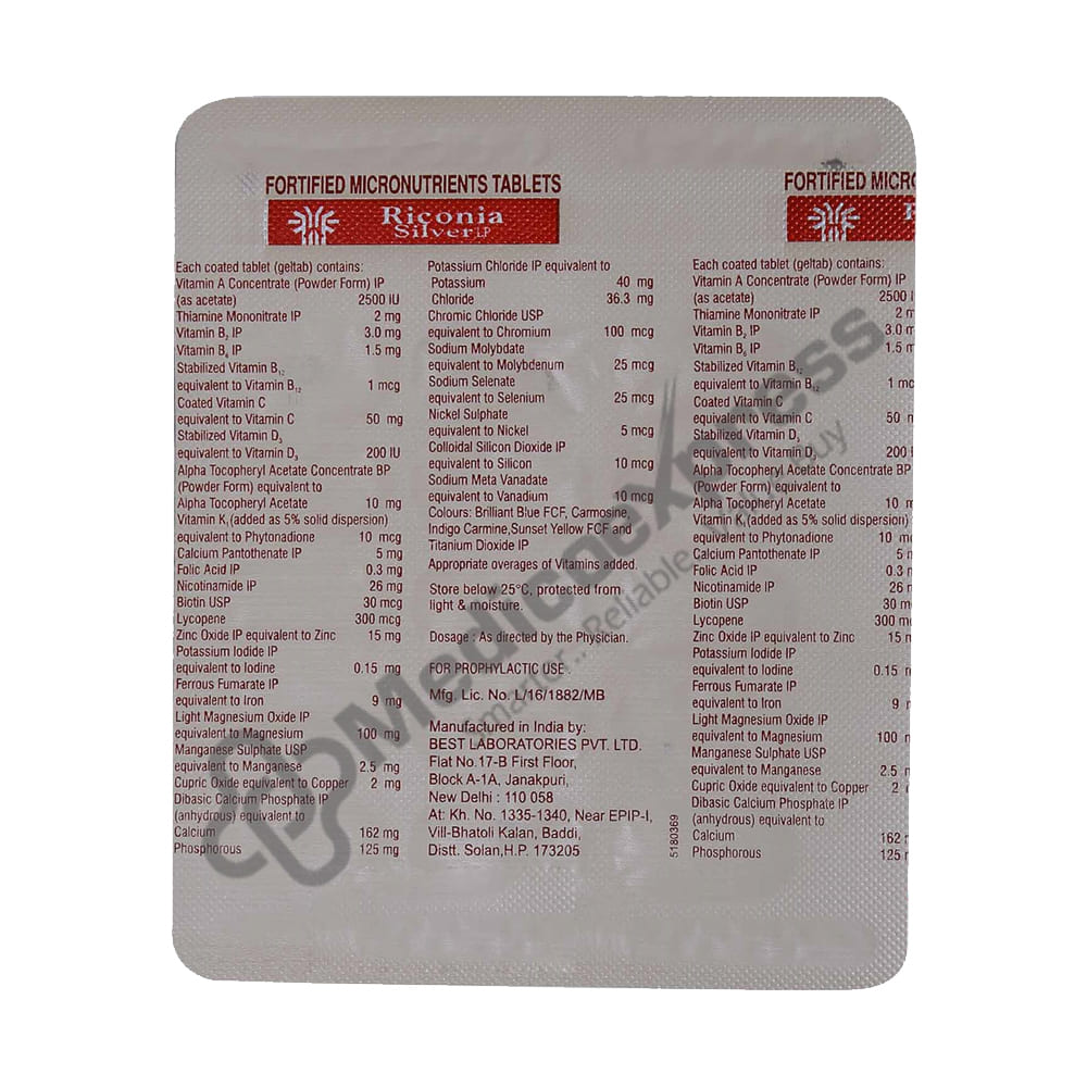 Selenium25 mcg + Nickel5 mcg + Silicon10 mcg + Vanadium10 mcg + Calcium Pantothenate5mg + Alpha Tocopheryl Acetate10mg + Vitamin B7 / Biotin / Vitamin H30 mcg + Vitamin B3 / Nicotinic Acid / Niacin26mg + Zinc15mg + Lycopene300 mcg + Magnesium100mg + Iodin0.15mg + Copper2mg + Manganese2.5mg + Phosphorous125mg + Calcium162mg + Chloride36.3mg + Potassium40mg + Molybdenum25 mcg + Chromium100 mcg + Vitamin B9 / Folic Acid / Folate0.3mg + Iron9mg + Vitamin B2 / Riboflavin3mg + Vitamin B5 / Pantothenic Acid1.5mg + Vitamin A / Retinol2500 Iu + Thiamine Mononitrate2mg + Vitamin D3 / Cholecalciferol200 Iu + Vitamin K110 mcg + Vitamin B12 / Mecobalamin / Cynocobalamin / Methylcobalamin1 mcg + Vitamin C / Ascorbic Acid50mg