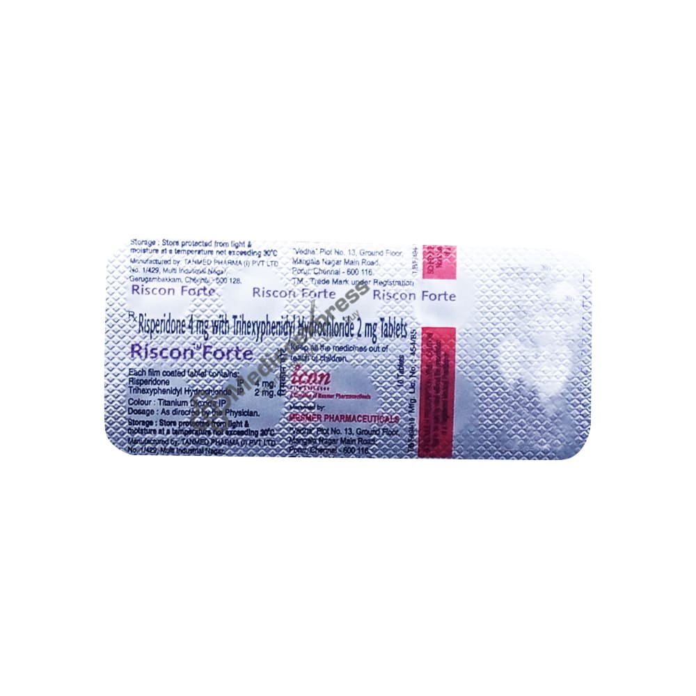 Riscon forte tablet 10’s an antipsychotic medication used to treat schizophrenia and acute manic episodes (irritable mood, having suicidal thoughts).Disclaimer:For more information contact your physician