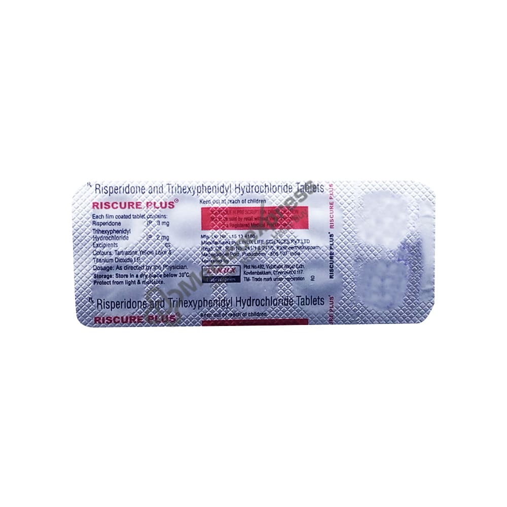 Riscure plus tablet 10's an antipsychotic medication used to treat schizophrenia and acute manic episodes (irritable mood, having suicidal thoughts).Disclaimer:For more information contact your physician