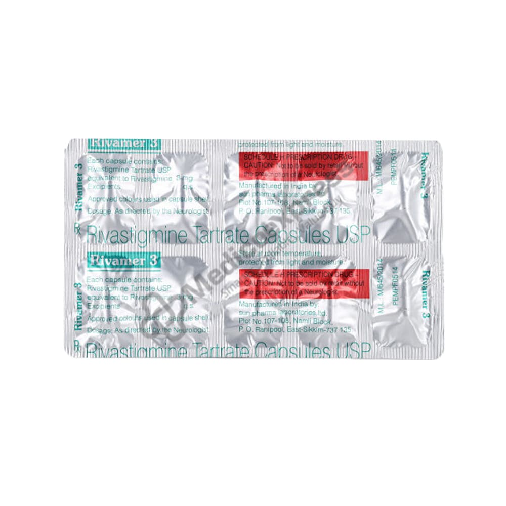 RIVAMER 3MG contains Rivastigmine, a cholinesterase inhibitor. It is used in adult patients to treat mild to moderately severe Alzheimer's dementia (progressive disease that destroys memory and other important mental functions).Disclaimer:For More Information Contact Your Physician