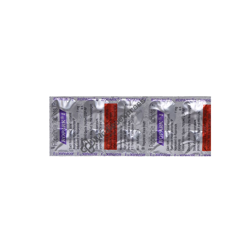 ROPARK 1MG contains Ropinirole, which belongs to the class of drugs known as dopamine agonists. It is used to treat Parkinson's disease and moderate to severe idiopathic restless legs syndrome symptoms (RLS).Disclaimer:For More Information Contact Your Physician