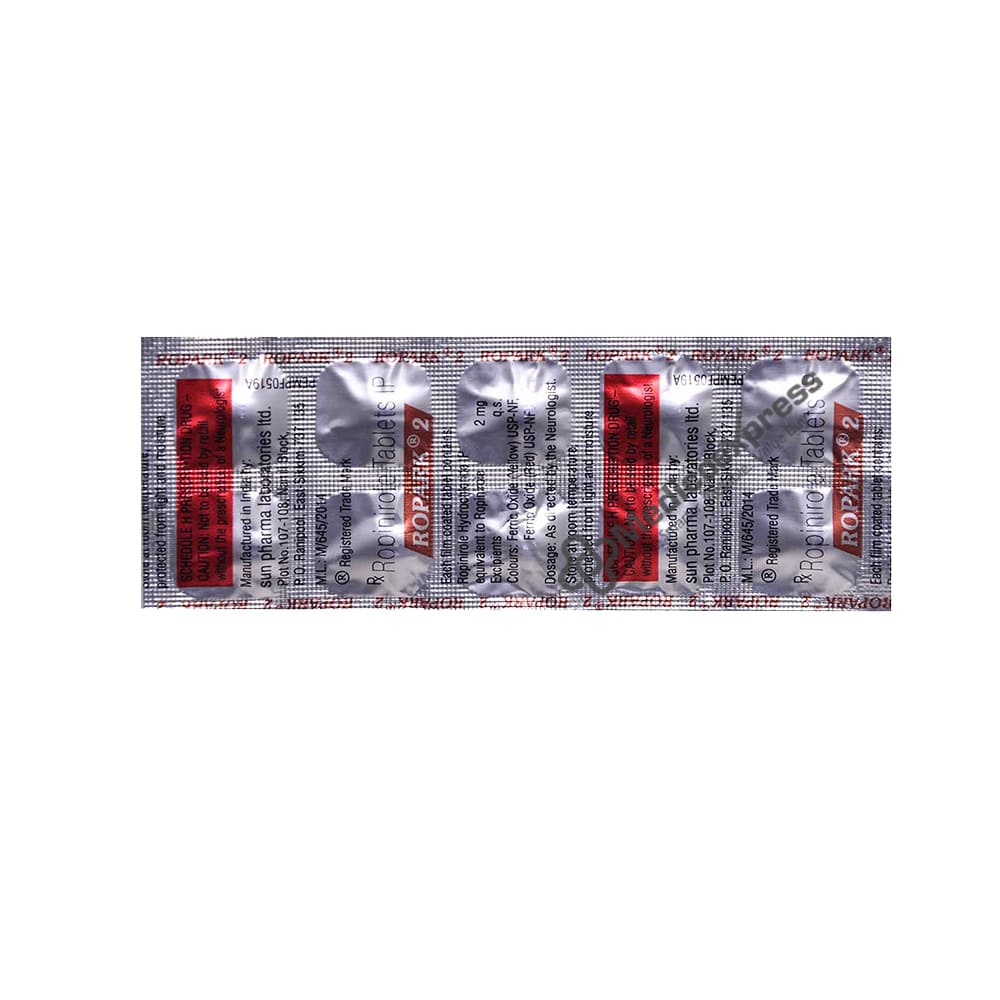 ROPARK 2MG contains Ropinirole, which belongs to the class of drugs known as dopamine agonists. It is used to treat Parkinson's disease and moderate to severe idiopathic restless legs syndrome symptoms (RLS).Disclaimer:For More Information Contact Your Physician