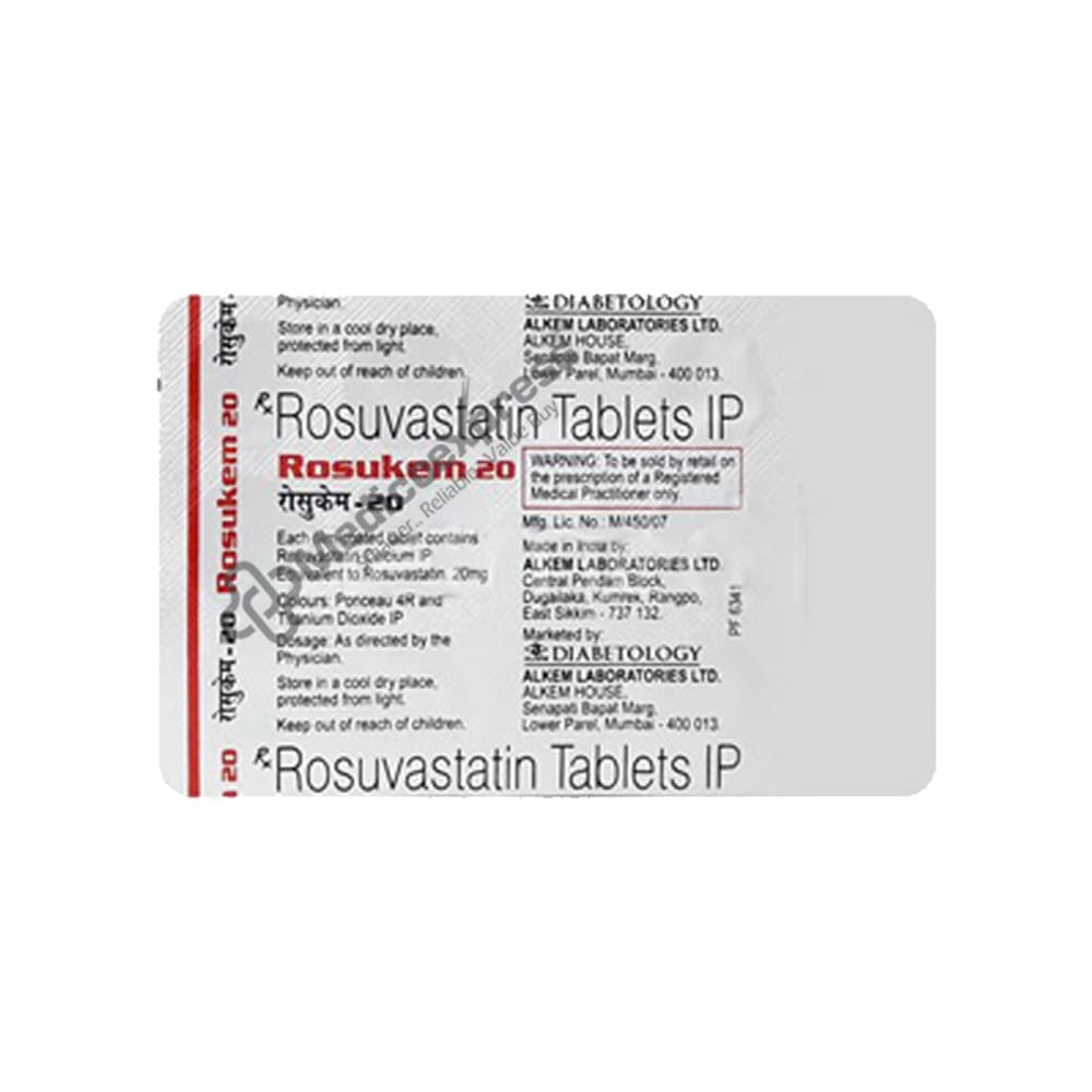 Rosukem 20mg Tablet 15s is a member of the statin drug class, which lowers levels of bad cholesterol (low-density lipoprotein, or LDL) and triglycerides to lower the risk of future heart attacks and strokes. When there is an excess of the wrong kind of cholesterol balance in the blood, it is called hyperlipidemia or dyslipidemia, and it raises the blood cholesterol level. Your arteries become narrowed and clogged when your blood cholesterol level is high, which eventually leads to heart diseases like stroke and heart attack. By inhibiting liver enzymes, Rosukem 20 mg Tablet 15s prevent the liver from producing as much cholesterol. The liver's ability to absorb and break down circulating cholesterol is improved with Rosukem 5 Tablet 15.Disclaimer:For more information contact your physician.