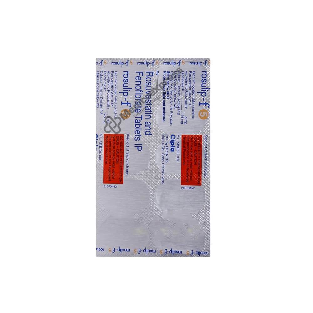 Rosulip-F 5 Tablet combines two lipid (fat) lowering medications. It is used to lower blood levels of lipids known as cholesterol and triglycerides when lifestyle changes (such as a low-fat diet) have failed. This medication lowers the risk of heart disease.Disclaimer:For More Information Contact Your Physician