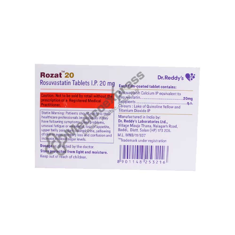 Rozat 20 mg Tablet 15s is a member of the statin drug class, which lowers levels of glycerides and bad cholesterol (low-density lipoprotein, or LDL), lowering the risk of heart attack and stroke in the future. When there is an excess of the wrong kind of cholesterol balance in the blood, it is called hyperlipidemia or dyslipidemia, and it raises the blood cholesterol level. Your arteries become restricted and clogged when your blood cholesterol level is high, which eventually leads to heart disorders like stroke and heart attack. Rozat 20 Tablet 15s function by preventing the liver from producing as much cholesterol by blocking liver enzymes. The liver's ability to absorb and break down circulating cholesterol is improved with Rozat 20 Tablet 15. Rozat 10 Tablet 15's reduces lipid levels as a result. Disclaimer:For more information contact your physician.