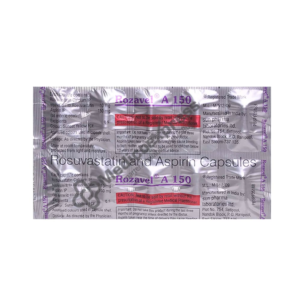 Rozavel A 150 Capsule 10 is a blood-thinning and cholesterol-lowering agent that is primarily used to prevent myocardial infarction (heart attack), stroke, or peripheral vascular disease.Disclaimer:For More Information Contact Your Physician