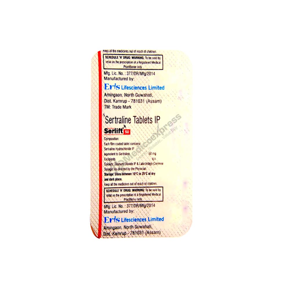 Sertraline, found in SERLIFT 50MG, belongs to a class of drugs known as Selective Serotonin Reuptake Inhibitors. It is used to treat anxiety and/or depression disorders. It works by increasing serotonin levels in the brain, which helps to stabilise our mood, feelings of well-being, and happiness.Disclaimer:For More Information Contact Your Physician