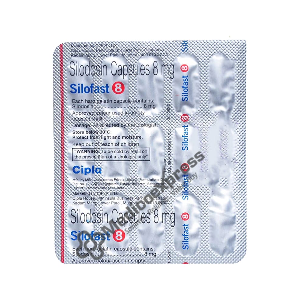 Silofast 8 Capsule 15 belongs to a class of drugs known as "alpha-blockers," which are used to treat the symptoms of an enlarged prostate gland (benign prostatic hyperplasia - BPH) in men. Benign prostatic hyperplasia (BPH) is a condition in which the prostate gland enlarges due to cell multiplication, most commonly in men over the age of 50. Prostate gland growth is non-cancerous in nature.Disclaimer:For More Information Contact Your Physician