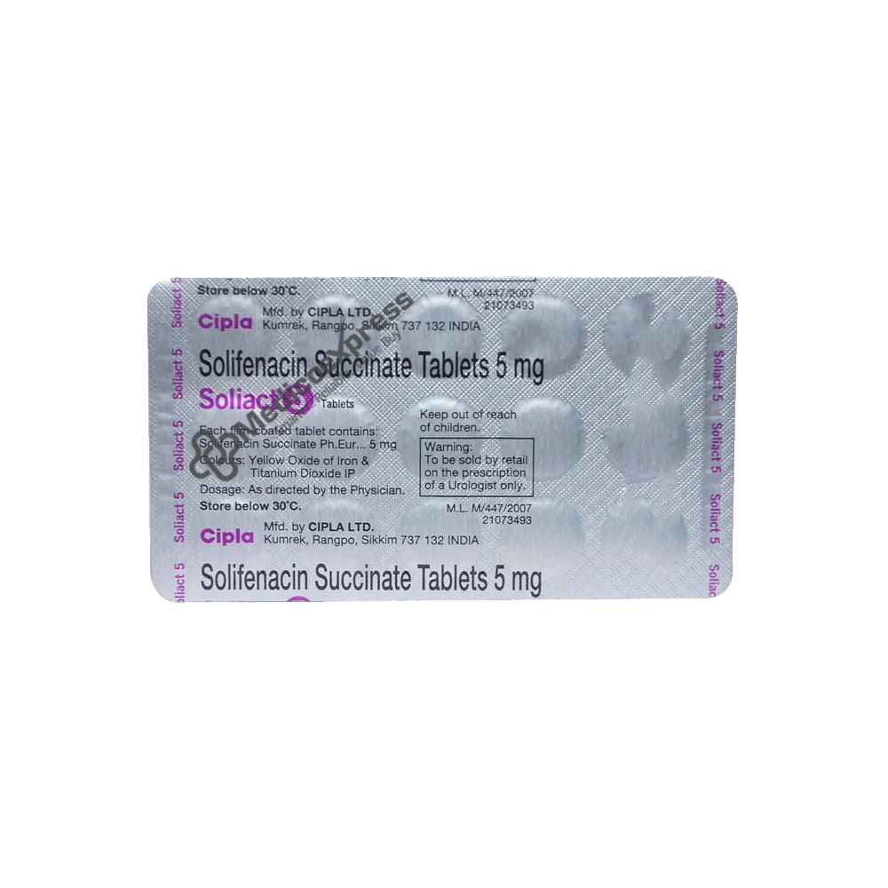 SOLIACT 5MG contains Solifenacin, which belongs to the class of drugs known as anticholinergics. It is used to treat the symptoms of overactive bladder, a urological condition. Overactive bladder, also known as OAB, is a type of bladder problem that causes a strong urge to urinate that is difficult to control.Disclaimer:For More Information Contact Your Physician