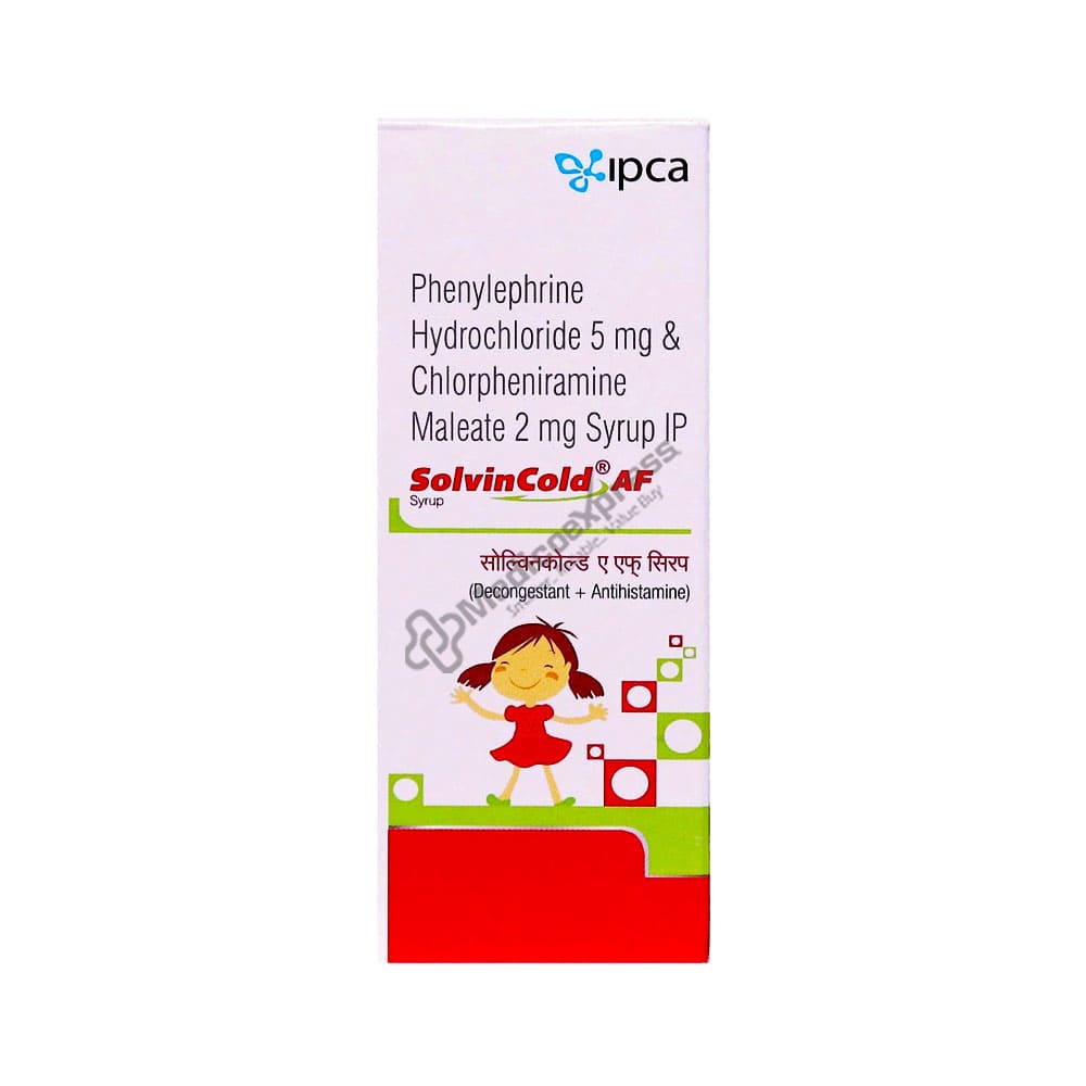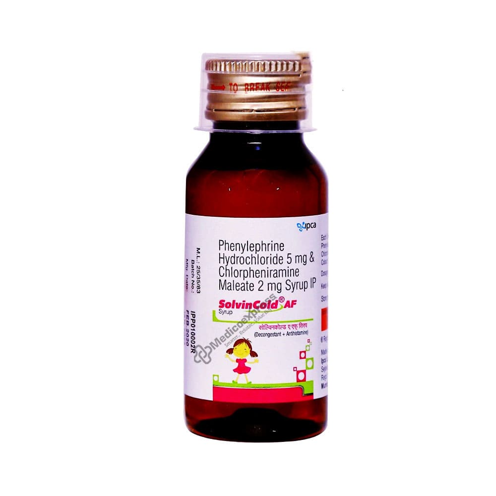 Solvin Cold Af Syrup 60 Ml Is An Anti-Allergic Combination Drug Intended To Treat Symptoms Caused By The Common Cold, Flu, Allergies, And Other Breathing Issues Such As Sinusitis And Bronchitis.Disclaimer:For More Information Contact Your Physician