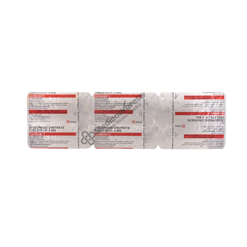 Sorbitrate 5 tablet 50's is a blood pressure-lowering medicine known as a 'nitrate vasodilator,' which is used to avoid angina (heart-related chest discomfort) or heart failure.Disclaimer:For more information contact your physician
