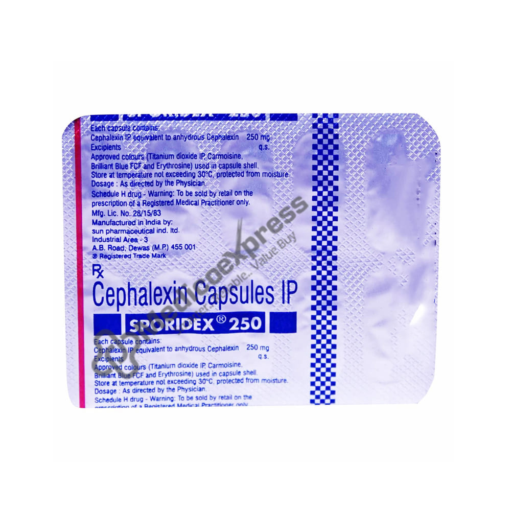 Sporidex 250 capsule 10 is a cephalosporin antibiotic that is used to treat bacterial infections of the nose, lungs, ear, bones, joints, skin, urinary tract, prostate gland, and reproductive system.Disclaimer:For more information contact your physician