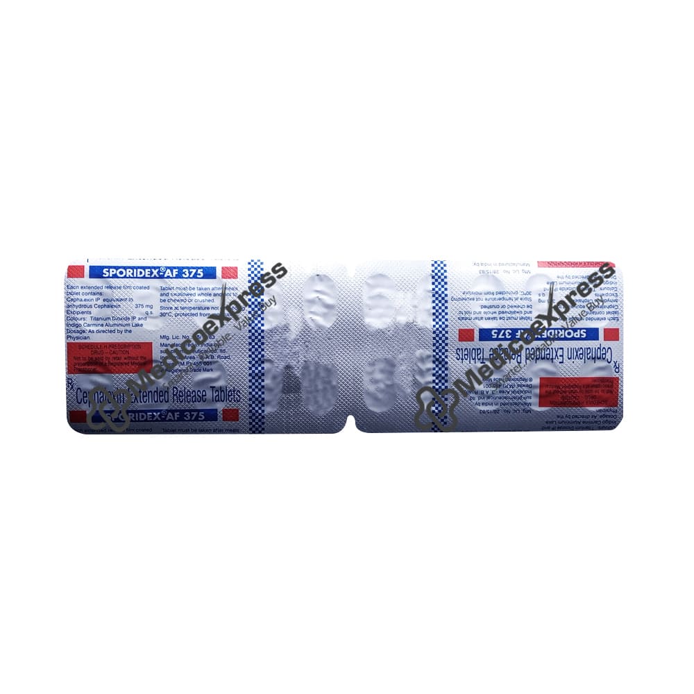 Sporidex af 375 tablet 10's is a cephalosporin antibiotic that is used to treat bacterial infections of the nose, lungs, ear, bones, joints, skin, urinary tract, prostate gland, and reproductive system.Disclaimer:For more information contact your physician