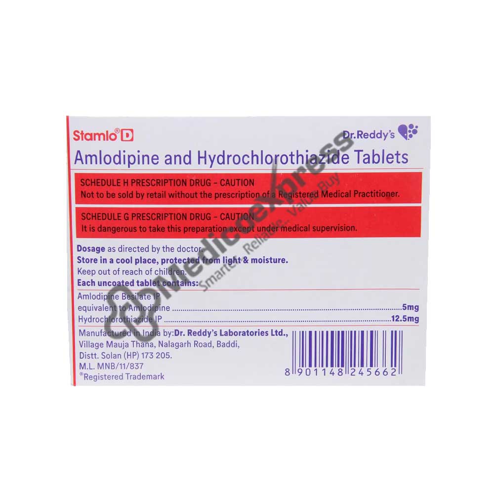 Stamlo D Tablet 15's are part of a class of 'anti-hypertensive' drugs that are primarily used to treat high blood pressure (high blood pressure). Chronic or lifelong high blood pressure, also known as hypertension, is characterised by an excessively high blood pressure against the arterial walls. As a result, there may be blood vessel damage, heart disease, stroke, kidney disease, and other issues. Amlodipine, a calcium channel blocker, and Atenolol are the active ingredients of Stamlo Beta Tablet 15s (a beta-blocker). Amlodipine works by allowing the narrowed blood arteries to relax and expand. As a result, the heart's workload is decreased and it becomes more adept at pumping blood throughout the body. By inhibiting stress hormones like adrenaline and epinephrine, atenolol lowers the elevated heart rate. Consequently, it lowers high blood pressure, lowering the risk of heart attack or stroke in the future.Disclaimer:For more information contact your physician.