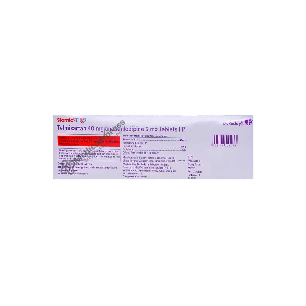 Stamlo-T Tablet 10's, is primarily used to treat high blood pressure (hypertension). A persistently increased blood pressure in the arteries is a symptom of the medical disorder known as hypertension. It is regarded as a crucial cardiovascular disease risk factor. By enlarging and relaxing blood vessels, Stamlo-T Tablet 10's reduce blood pressure.A fixed-dose combination of two medications, Telmisartan and Amlodipine, is called Stamlo-T Tablet 10's. Angiotensin II receptor antagonists, of which telmisartan is a member, are a class of medications. By preventing blood arteries from constricting, it decreases blood pressure and improves blood flow. It is used to lessen the likelihood of death, heart attack, and stroke. Amlodipine is a calcium channel blocker that enhances blood flow by dilating (widening) blood vessels.Disclaimer:For more information contact your physician.