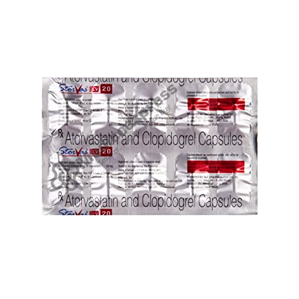 Storvas CV 20 Capsule 10's is a combination drug made up of a blood thinner and a cholesterol-lowering agent that is primarily used to prevent future heart attacks and strokes.Disclaimer:For More Information Contact Your Physician