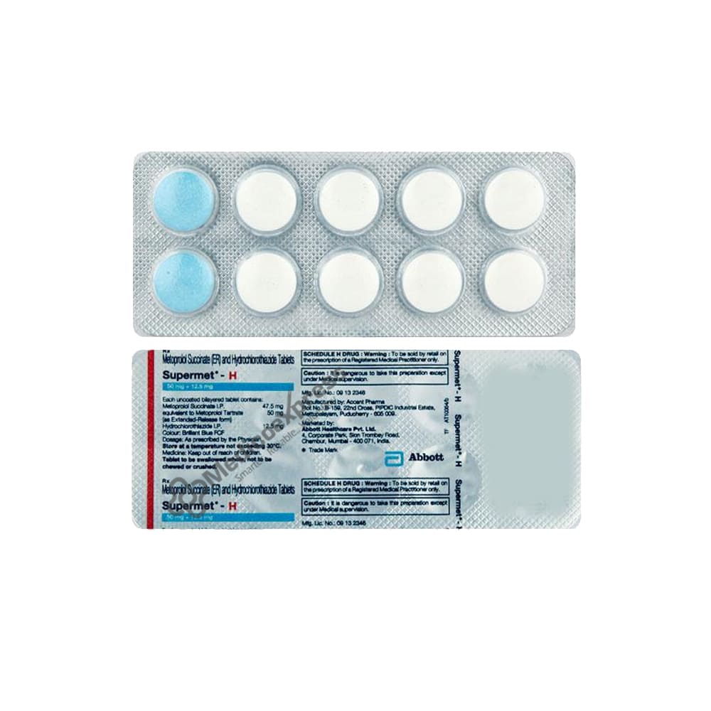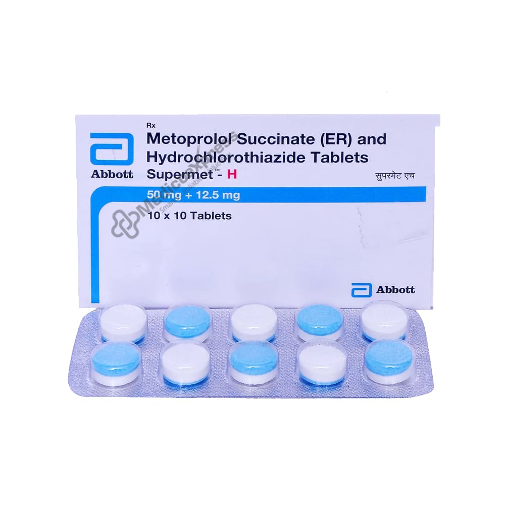 SUPERMET H TABLET is an anti-hypertensive medication used to treat hypertension (high blood pressure) and lower the risk of stroke in patients with high blood pressure. It is a combination medication that is typically used when a single medication is ineffective at controlling high blood pressure.Disclaimer:For More Information Contact Your Physician