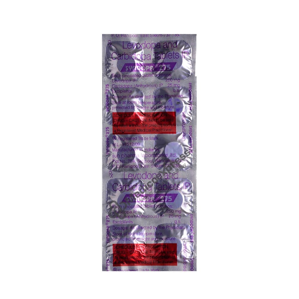 SYNDOPA 275MG is a combination of Carbidopa and Levodopa that belongs to the Antiparkinsonian drug class. It is used to alleviate the symptoms of Parkinsonism.Disclaimer:For More Information Contact Your Physician