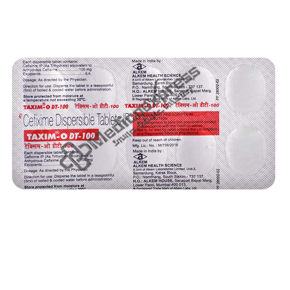 Taxim O 100 Mg Tablet 10 Belongs To The Cephalosporin Antibiotic Class. It Is Used To Treat Infections Caused By Sensitive Organisms (Bacteria) In The Ears, Nose, Sinuses (Sinusitis), Throat (Tonsillitis, Pharyngitis), Chest And Lungs (Bronchitis, Pneumonia), And Urinary System (Cystitis And Kidney Infections).Disclaimer:For More Information Contact Your Physician