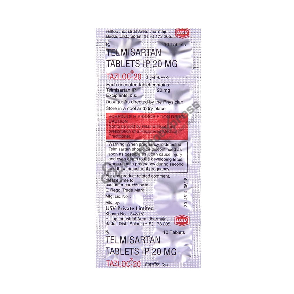 Tazloc-20 Tablet 10's Belongs To a Class Of Drugs Called As Angiotensin Ii Receptor Blockers, Which Are Used To Treat Adults With Hypertension (High Blood Pressure).Disclaimer:For More Information Contact Your Physician