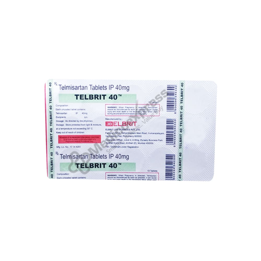 Telbrit 40mg tablet 15's belongs to a class of drugs known as angiotensin ii receptor blockers, which are used to treat hypertension (high blood pressure) in adults.Disclaimer:For more information contact your physician