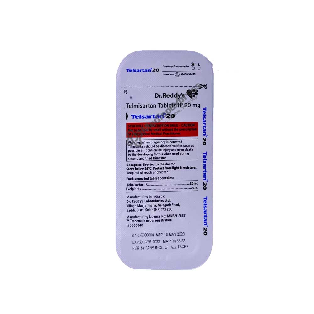 Telsartan 20mg Tablet 14'S are medications used to treat individuals with hypertension (high blood pressure). Adults can use Telsartan 20 Tablet 14s to lower their chance of having a heart attack or stroke. Essential hypertension is a medical disorder in which the arteries' blood pressure is chronically raised but for no apparent reason. However, obstructed blood flow to the heart or brain causes a heart attack or stroke, respectively. Telsartan 20 Mg Tablet 14s function by preventing the body from producing angiotensin II, a hormone that causes blood vessels to constrict and raises blood pressure. Telsartan 20 Mg Tablet 14 expands and relaxes blood vessels as a result.Disclaimer:For more information contact your physician.