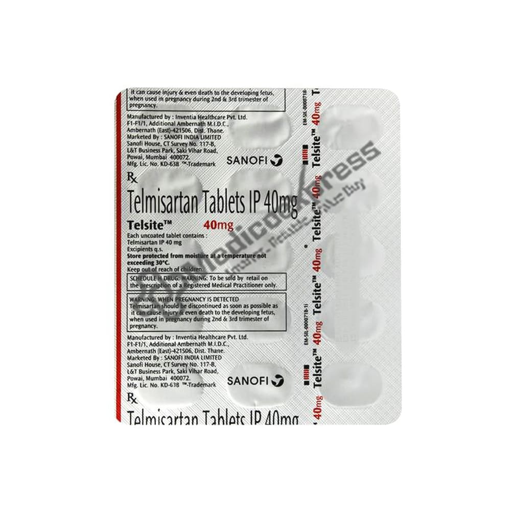 Telsite 40 Tablet 15's Belongs To a Class Of Drugs Called As Angiotensin Ii Receptor Blockers, Which Are Used To Treat Adults With Hypertension (High Blood Pressure).Disclaimer:For More Information Contact Your Physician