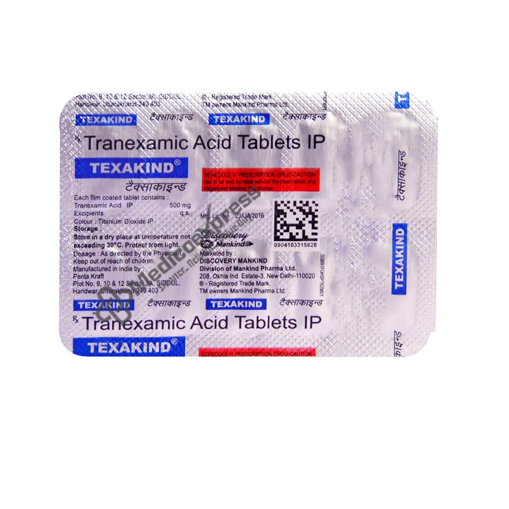 Texakind tablet 10's is an anti-fibrinolytic pharmaceutical that is used to treat abnormal or undesired bleeding.Disclaimer:For more information contact your physician