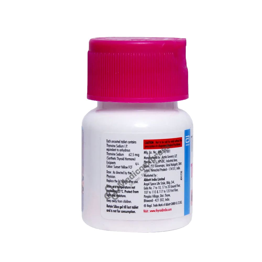 Thyronorm 62.5mcg Tablet 120's is a synthetic thyroid hormone that works by replacing thyroid hormone in the body when natural thyroid hormone production is insufficient to meet the body's needs.Disclaimer:For More Information Contact Your Physician