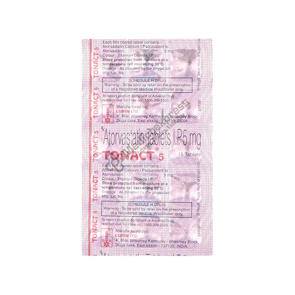 Tonact 5mg Strip Of 15 Tablets belongs to a class of drugs known as statins, which are used to treat high cholesterol levels in the body.Disclaimer:For More Information Contact Your Physician