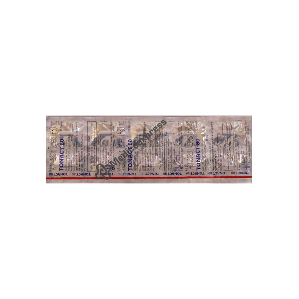 Tonact 80 mg Tablet 15s are part of a group of drugs known as statins that are used to treat high cholesterol levels in the body. Low-density lipoprotein (LDL), or bad cholesterol, is reduced and high-density lipoprotein (HDL), or good cholesterol, is elevated in the blood while taking Tonact 80 Tablet 15. The buildup of harmful lipid (fat) levels in the blood is known as dyslipidaemia. Low-density lipoprotein (LDL or bad cholesterol), triglycerides, and high-density lipoprotein (HDL) levels are always high in this syndrome (HDL or good cholesterol). Atorvastatin, an ingredient in Tonact 80 Tablet 15s, works by reducing the amount of cholesterol that could build up on the artery walls and obstruct blood flow by delaying the creation of cholesterol in the body.Disclaimer:For more information contact your physician.