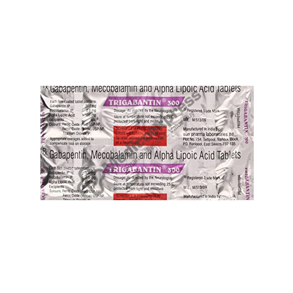 Trigabantin 300 Tablet is a combination medication that is used to treat neuropathic pain. It acts on the brain to calm the damaged or overactive nerves, reducing the sensation of pain. It also aids in the regeneration of the body's damaged nerves.Disclaimer:For More Information Contact Your Physician