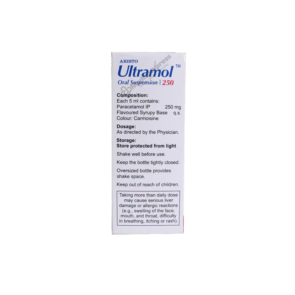 Ultramol 250 Oral Suspension is a commonly prescribed medication that relieves pain and lowers high body temperatures (fever). It treats headaches, toothaches, body aches, fever, and the common cold in children.Disclaimer : For More Details, Contact Your Physician