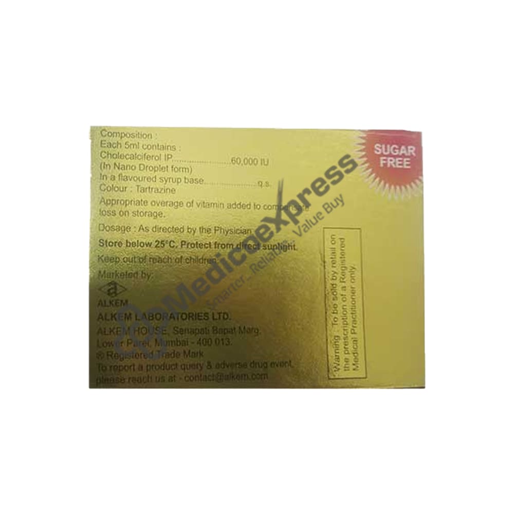 Uprise-D3 60K Oral Solution 5 ml, which is generally used to treat low blood calcium levels. Vitamin D deficiency, osteoporosis (weak and brittle bones), hypoparathyroidism (the body's parathyroid glands produce low levels of calcium), latent tetany (a muscle disease with low blood calcium levels), and rickets or osteomalacia are among the conditions that Uprise-D3 60K Oral Solution 5 ml successfully treats (softening or deforming of bones due to lack of calcium). A vitamin D deficiency happens when your body has low levels of the vitamin, which can be brought on by poor diet, poor intestinal absorption, or a lack of sun exposure.Disclaimer:For more information contact your physician.