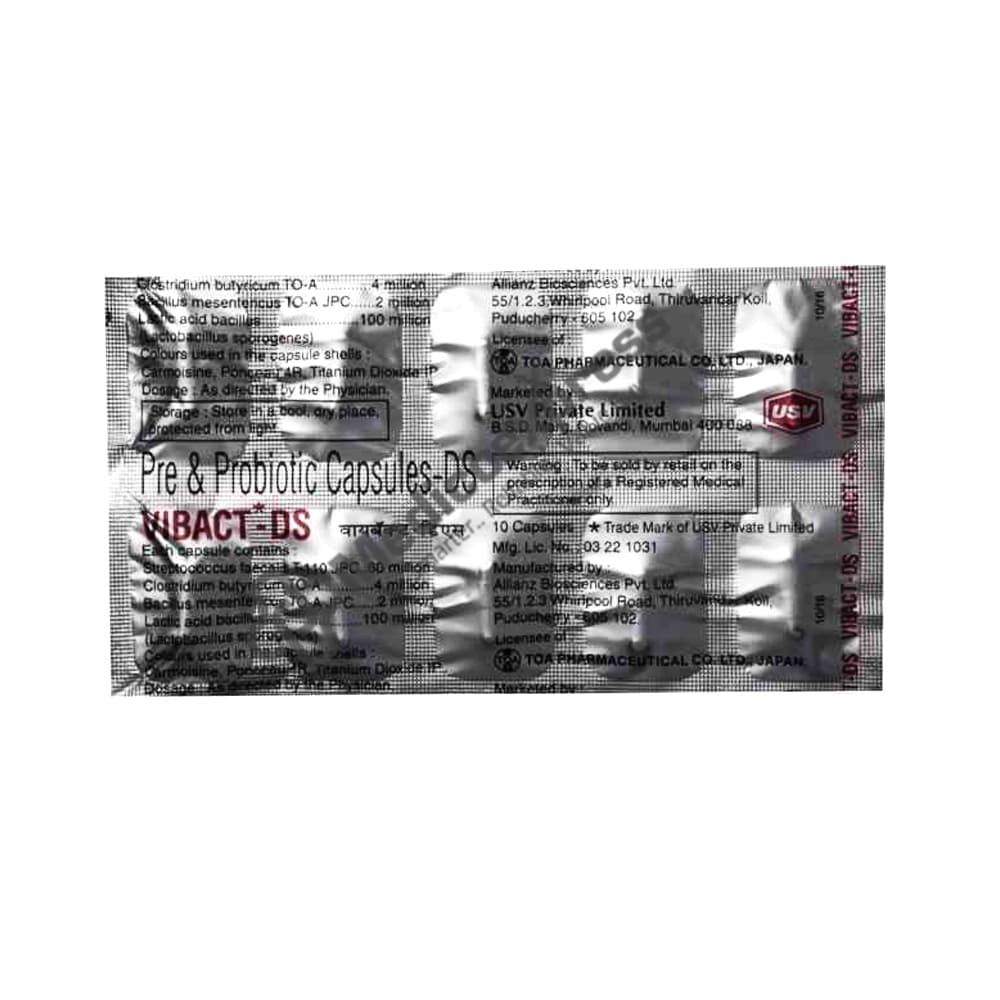 Vibact DS capsule is a pre and probiotic supplement that is designed to maintain the health of your gut and immune system.Disclaimer:For More Information Contact Your Physician