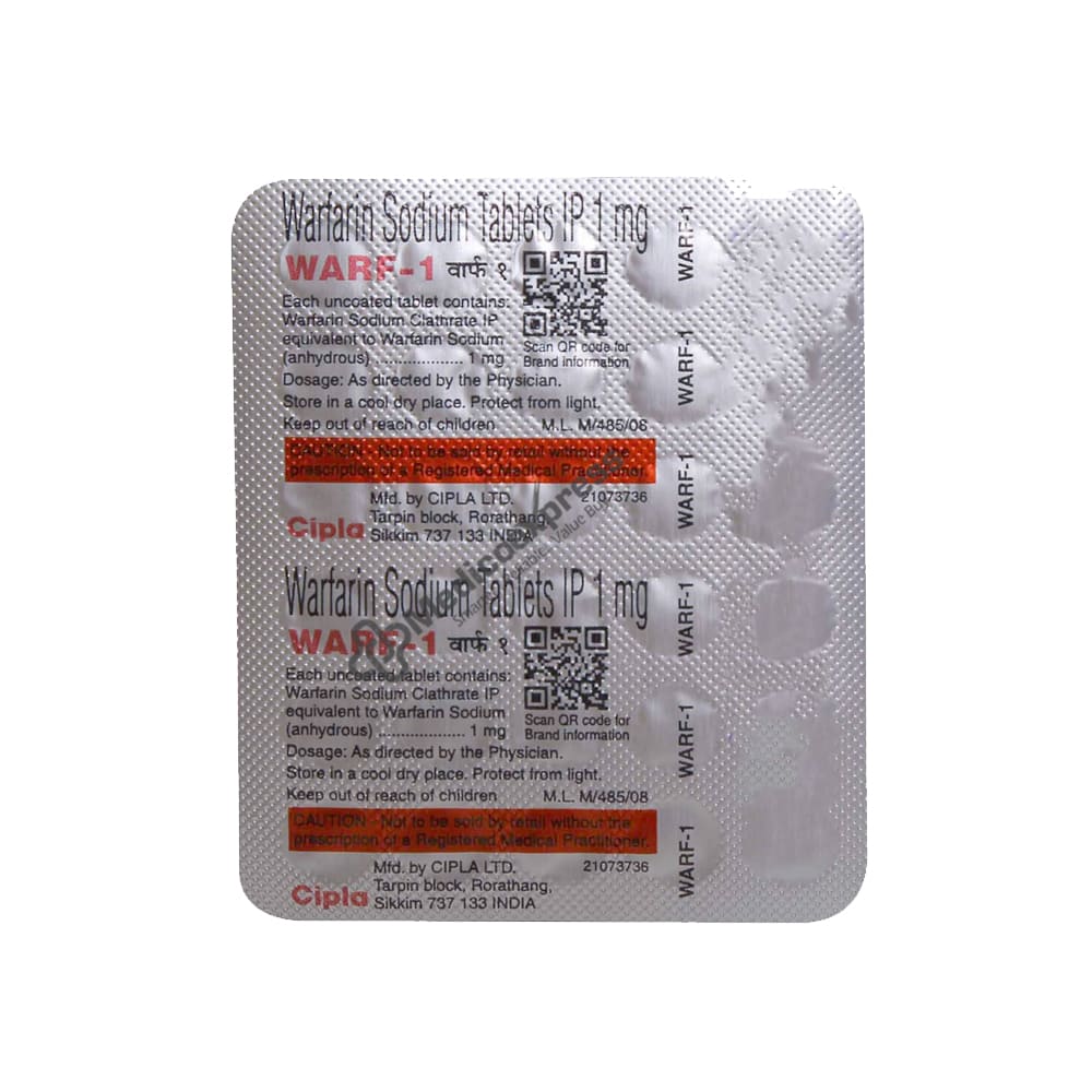 Warf 1 Tablet is an oral anticoagulant that aids in the prevention of dangerous blood clots in the legs, lungs, brain, and heart. It is used to prevent deep vein thrombosis, pulmonary embolism, and stroke.Disclaimer:For More Information Contact Your Physician
